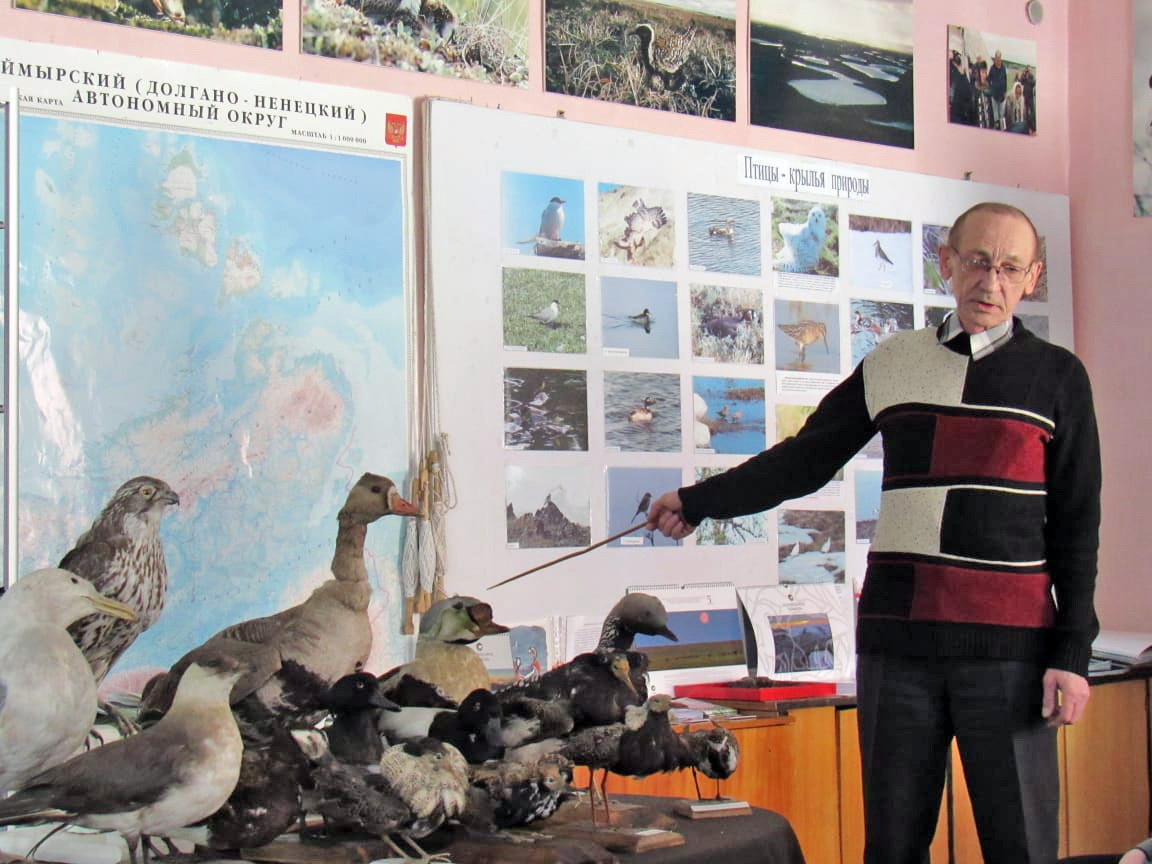 Анатолий Александрович не только изучает пернатых, но и любит их рисовать. Его книга очерков со вкусом иллюстрирована его же рисунками. И там мы видим не только птиц, но и оленей, цветы, деревья и саму тундру. Художник в нем открылся в школьный период, даже хотел связать свою жизнь с искусством. Но после восьмого класса передумал и пошел по научной стезе. А еще Анатолий Гаврилов таксидермист. И нетрудно догадаться, чучел каких животных он в основном делает – птиц. Они, кстати помогают познать природу ребятишкам Хатанги. Ведь в стенах нашего учреждения проходит много мероприятий, где специалисты заповедника рассказывают о заповеднике. Старший научный сотрудник также занимается экологическим просвещением населения. Его лекции любят слушать и дети, и взрослые.