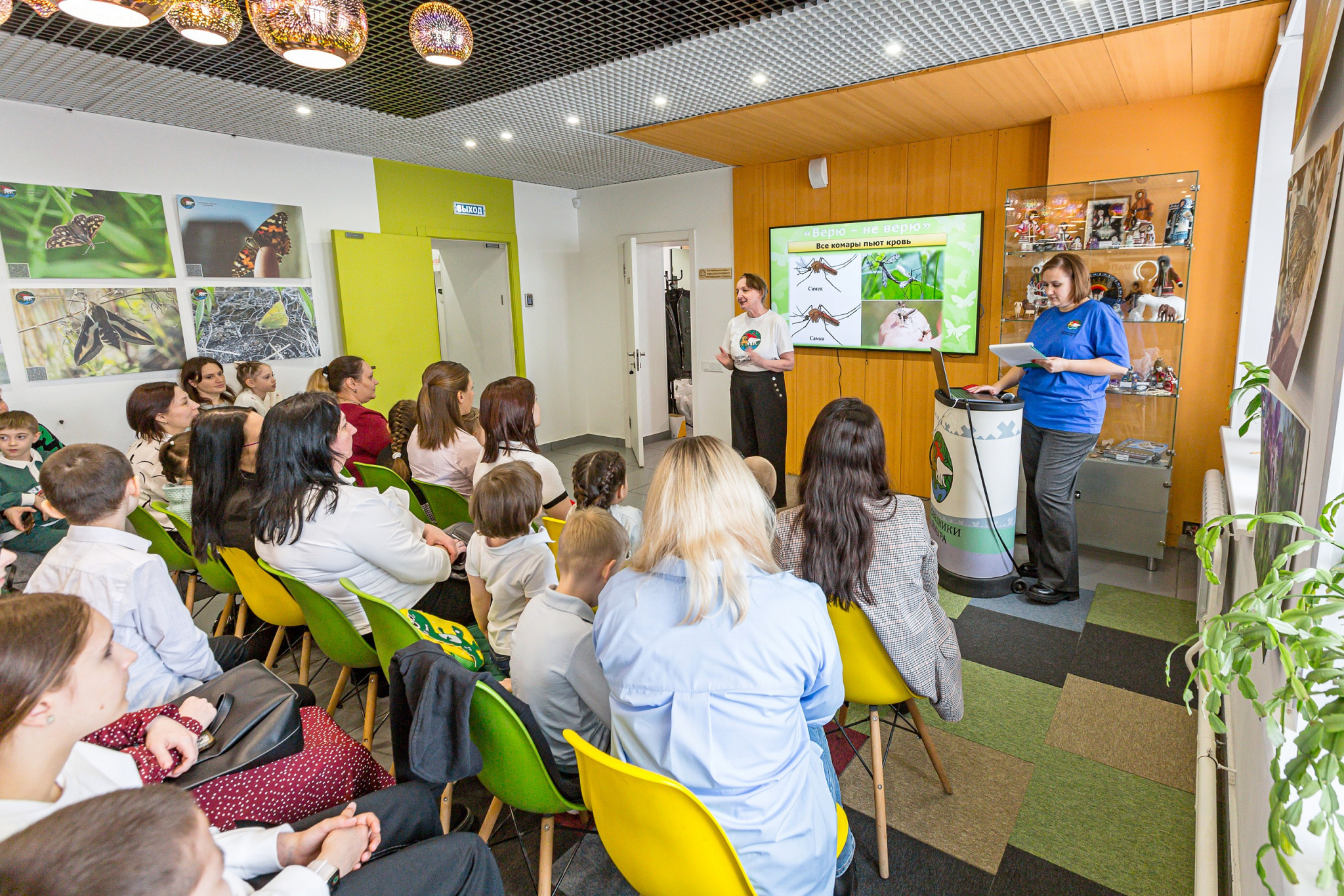 Перед торжественным награждением ведущие провели интерактивную разминку – игру о насекомых, которая оживила зал. Участники с энтузиазмом отвечали на вопросы, узнавая удивительные факты: о колоссальной численности насекомых на Земле, о способности тундровых шмелей летать при отрицательных температурах, о разнообразии окраски божьих коровок, о рекордной скорости стрекоз и о том, что кровь пьют только самки комаров. Большая часть зала продемонстрировала отменную подготовку, угадав большинство фактов.