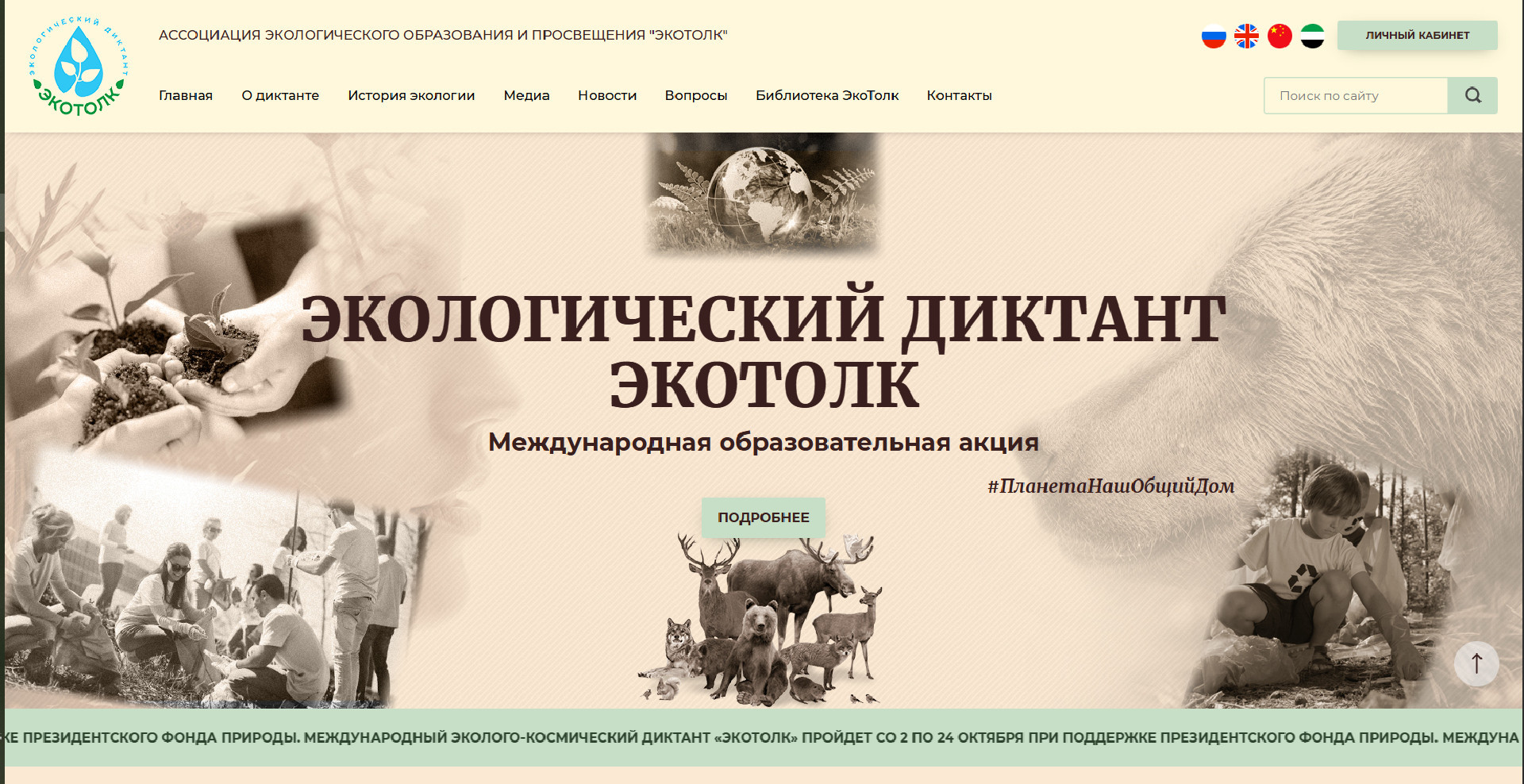 Ссылка на официальный портал экологического диктанта «ЭкоТолк» ECODIKTANT.RU https://ecodiktant.ru/