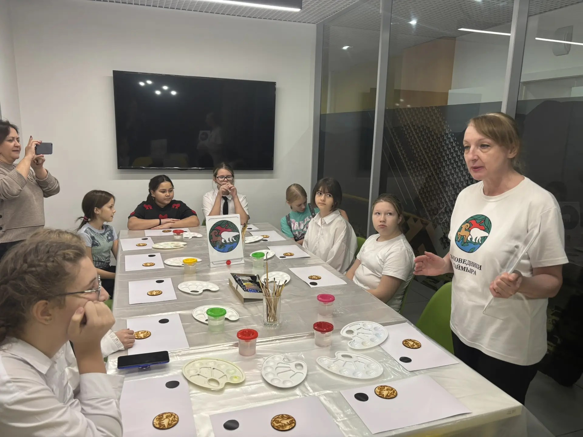 Особый восторг вызвал мастер-класс для юных художников из Норильской детской художественной школы. Под чутким руководством опытных наставников они создавали яркие и красочные магниты с изображениями краснокнижных животных, помещенных на эмблеме объединенной дирекции заповедников. Эти маленькие шедевры стали не просто сувенирами, а символами красоты и хрупкости природы Таймыра, призывающими к ее защите.